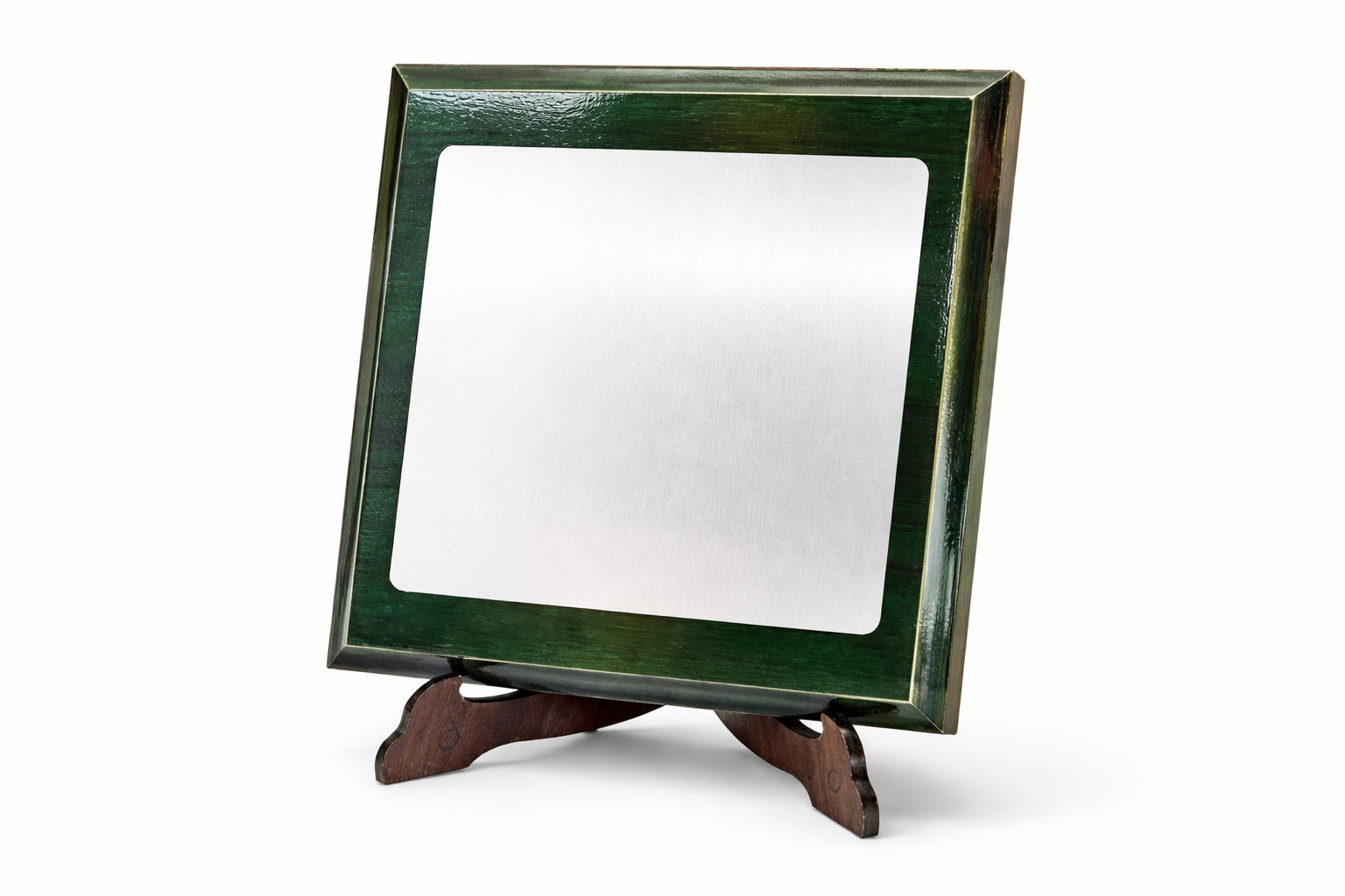 Puitplaat graveeritud või UV prinditud alumiiniumplaadiga, kaasas jalg, taga seinakinnitus. 140x140mm.