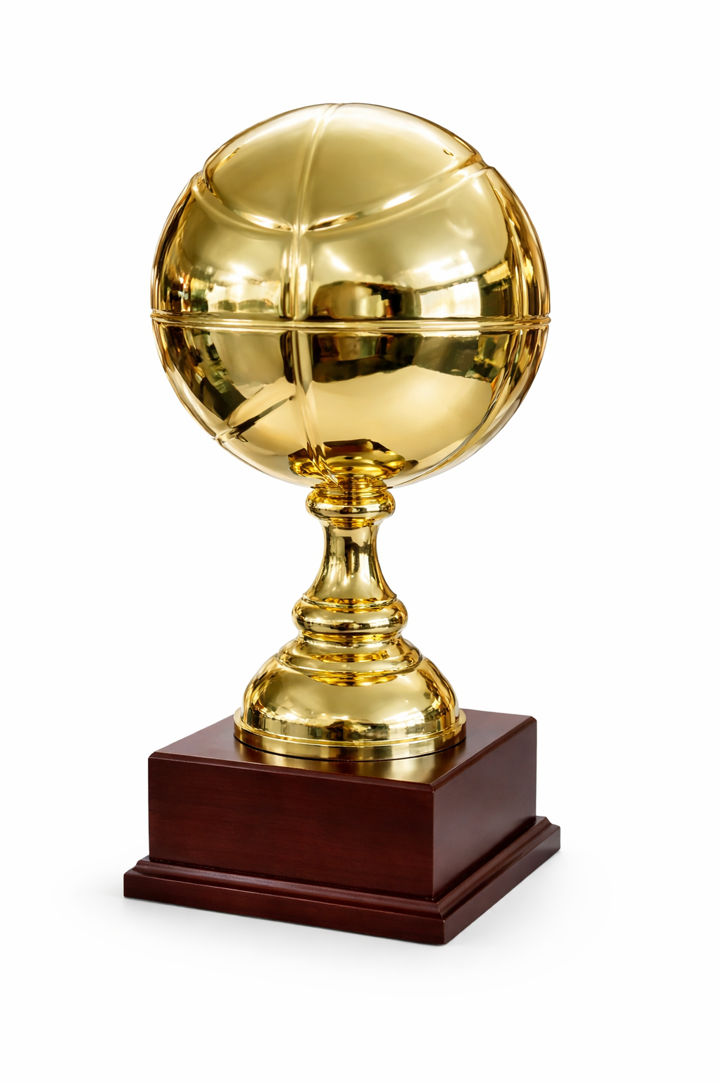 Metallkarikas puitalusel. Suuremal mõõdul kauss korvpalli nr7 suurune.