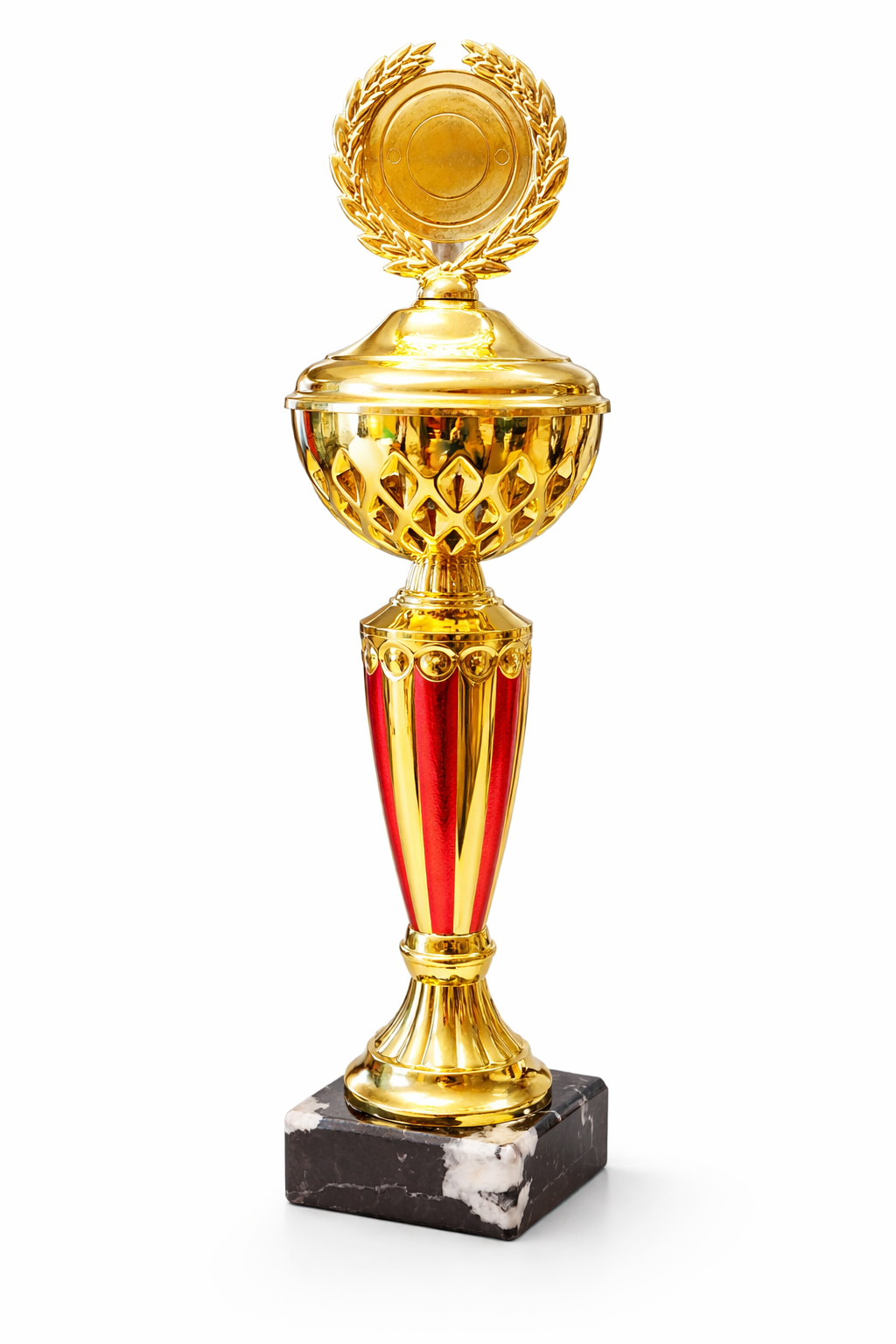 Metallkausi- ja kaanega karikas marmoralusel