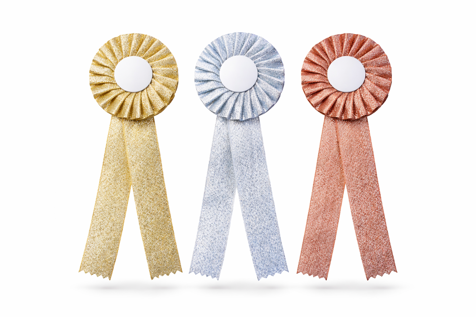 Metallivärvi rosett papist põhjal, taga nõelkinnitus. Läbimõõt 6cm, südamik 2,5 cm. Üldpikkus 17cm, paelad 2cm laiused.